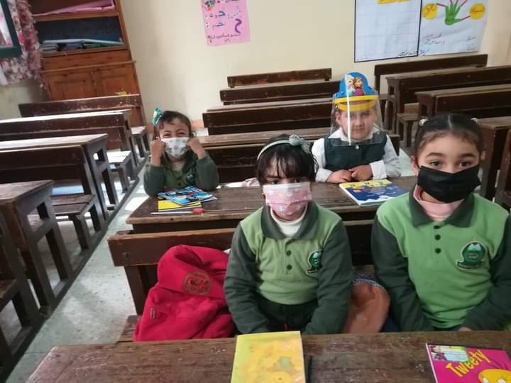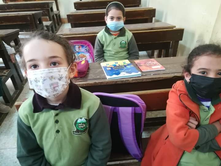 صور طلاب مدرسة التوحيد مع مراعاة الاجرائات الاحترازية